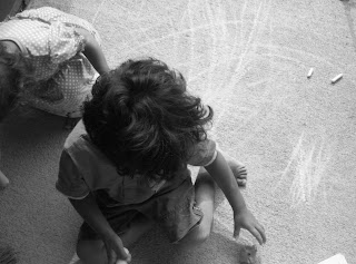Jack and Olive have a little fun with sidewalk chalk...